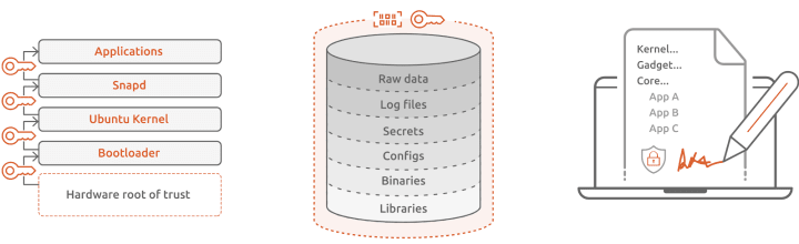 Apps running on top of Ubuntu Core go into boxes and become single files compressed with everything they depend on with the ability to write to strictly-assigned space. Container primitives lock down and isolate the different features, with applications running in a security sandbox by default, secured by kernel primitives like cgroups and AppArmor.