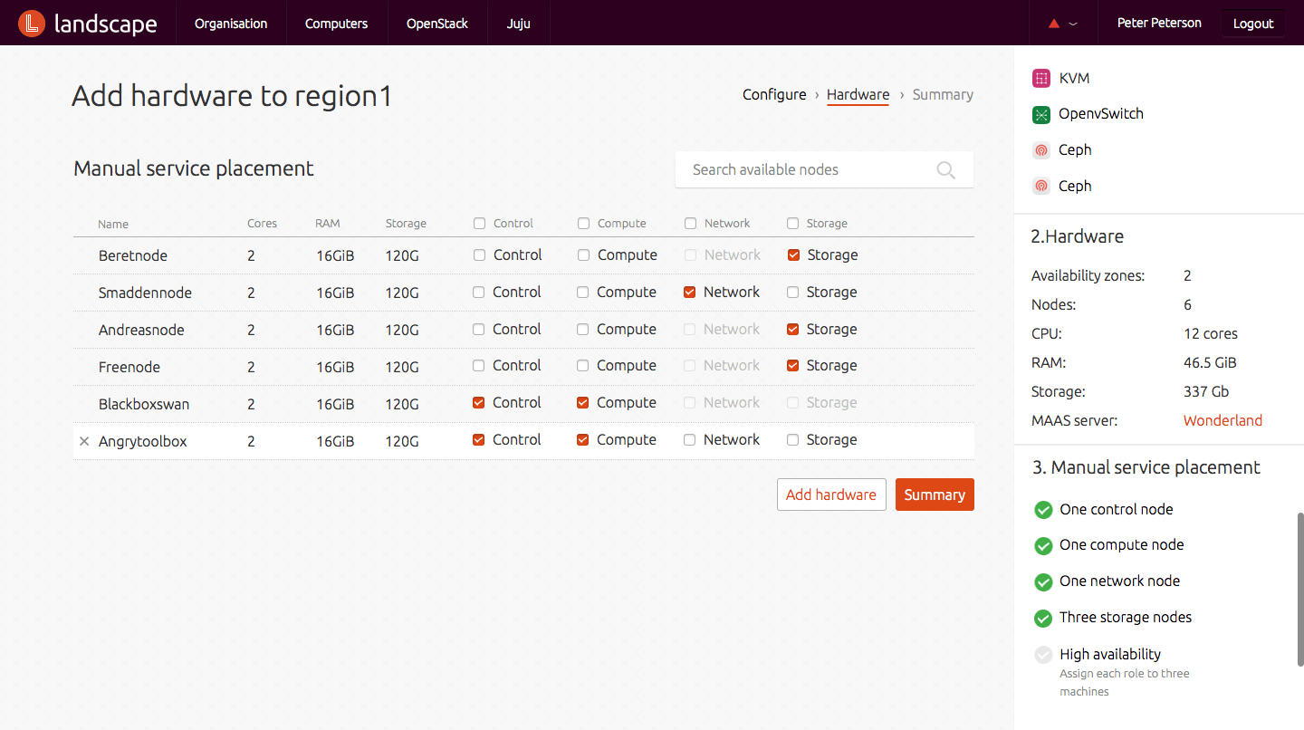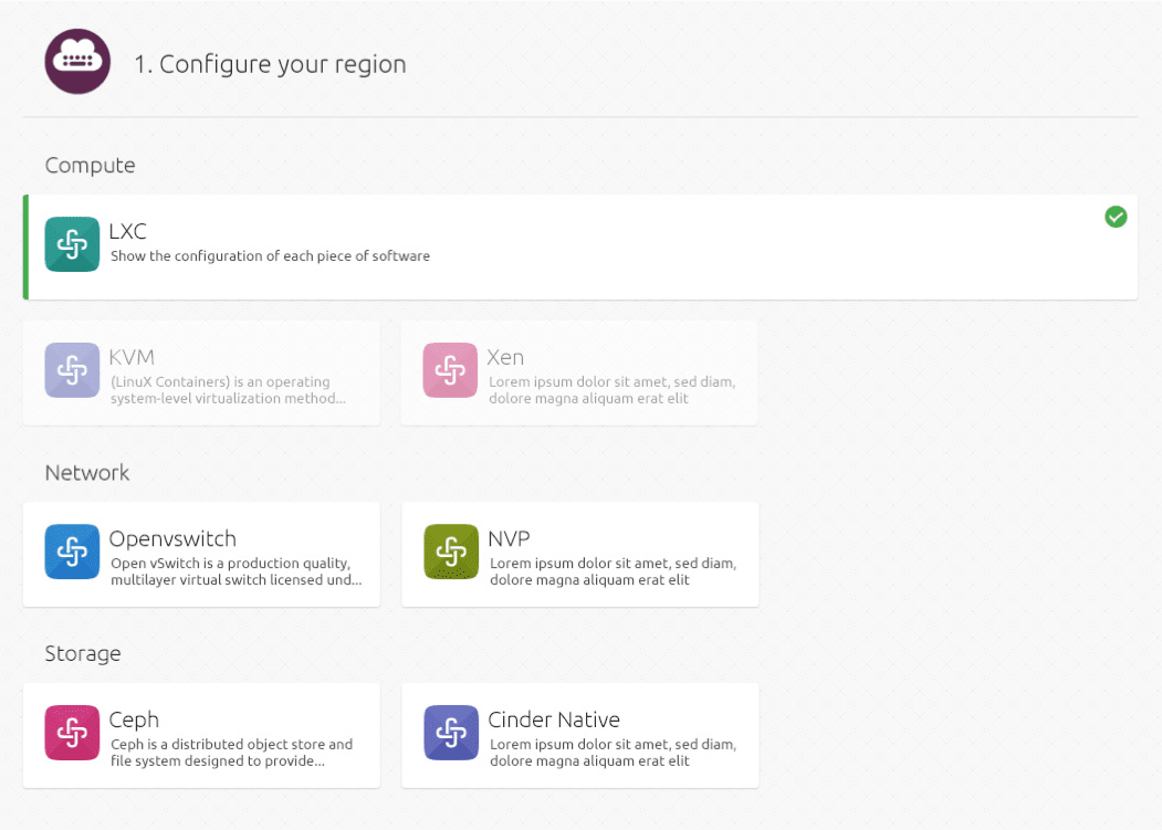 In the alpha version a user could already select nodes, but in most enterprises users want more flexibility. Often there are different types of hardware for different roles in the cloud, so users don’t always want to automatically distribute all the OpenStack services over all the machines. We designed the ability to choose specific roles like storage or compute for machines, to allow users to make the most of their hardware.