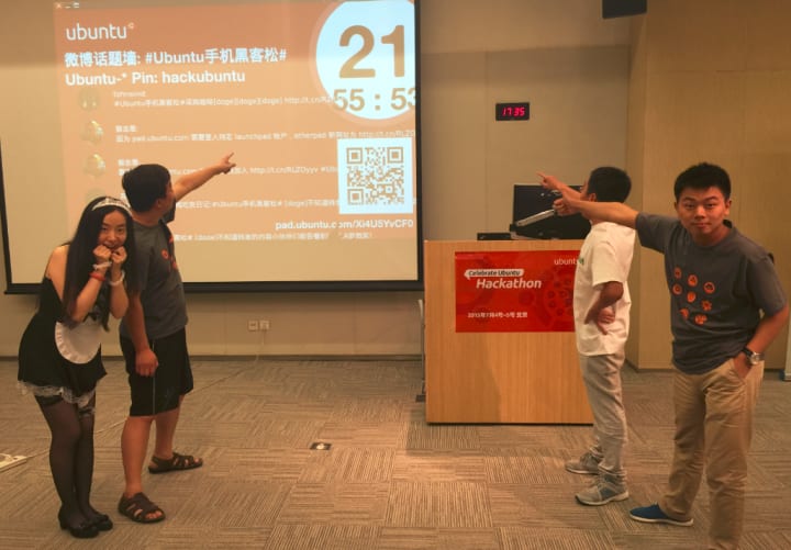 To celebrate the Developer Edition Ubuntu phone launch in China, Canonical organized a “celebrate Ubuntu” hackathon for the phone in Beijing. It was also hosted as part of the on-going China Mobile & Ubuntu Developer Innovation Contest, where all projects that were coded during the hackathon were able to be submitted into the contest afterwards. This 30+ hour hackathon was packed with creativity and excitement which was exhausting but amazingly fun.