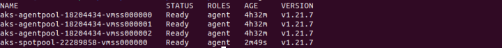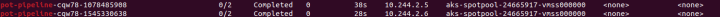 In the Node column, we can see that all tasks were executed on agentpool. This is expected because we did not allow our tasks to execute on our spot instances pool.