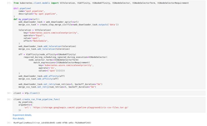 We walked through the process of adding a new spot instance pool to the AKS cluster, configuring the Kubeflow Pipelines workflow to use spot instances and handle eviction properly.