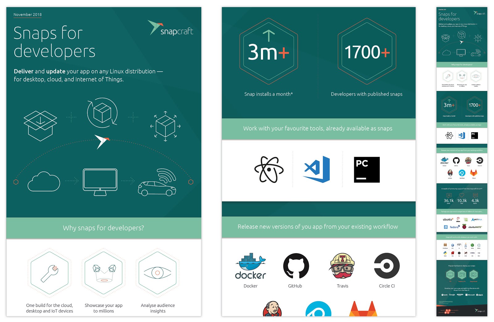 We finalised the developer version of the Snapcraft infographic design utilising the latest version of the branding.