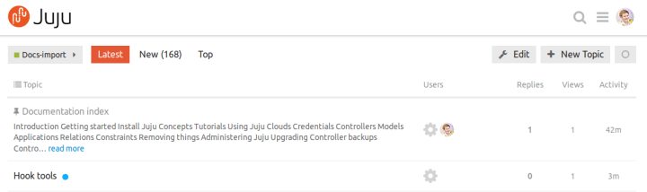 As the next step in migrating the Juju documentation from its current repository into a Discourse-backed system, we’ve now populated the docs-import category in discourse.jujucharms.com.