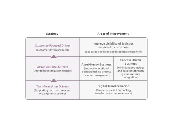 Table 1 from the previous section describes some of the areas of improvement in the logistics sector slowing transformation to a customer-centric organisation. Addressing these will be essential to players’ long-term success within the sector. Figure 2 below presents a strategy to address three major concerns: customer centricity, organisational challenges, and digital transformation. The strategies are categorised into three parts: transformation driver, organisational driver, and lastly, customer-focused driver.