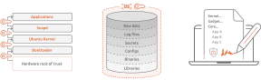 Ubuntu Core does not limit its security to snaps. The OS abstracts the root of trust implementation for its secure boot by proving the boot firmware integrity before establishing trust in userspace processes for ARM and x86 SoCs. Furthermore, it supports full disk encryption, protecting both the confidentiality and integrity of a device’s data in case of physical access.