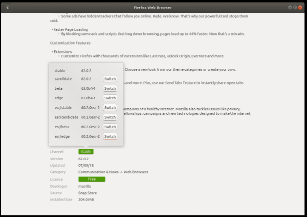 The great news for Ubuntu users is that the ESR version of Firefox is already available as a Snap, via the ESR channel. To get it simply: