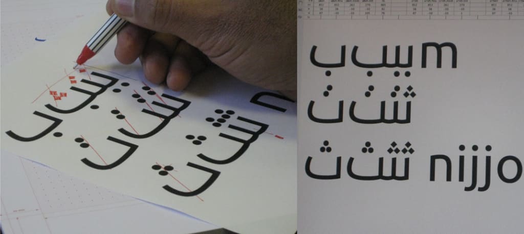 As with the Latin, the Arabic runs slightly more narrow that one would normally expect, to facilitate the use in UI. This presents a challenge in regards to the dot positioning above and below base characters. The dots are crucial to clearly identify the character, and a misinterpretation can easily lead to a word having a completely different meaning. We have placed the double dot on a diagonal line which allows for two double-dot characters to be set next to each other without causing any interpretation, aesthetic or legibility issues. A further feature of the Arabic design is that the baseline has a soft, rounded appearance, as is the case with the x-height and in some cases the cap height in the Latin. This, combined with the overall texture creates a tight harmony between the two scripts.