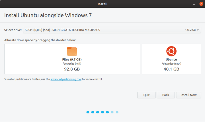 - Allow Ubuntu installer to configure things automatically – most likely, it will be able to set up the two operating systems side by side.