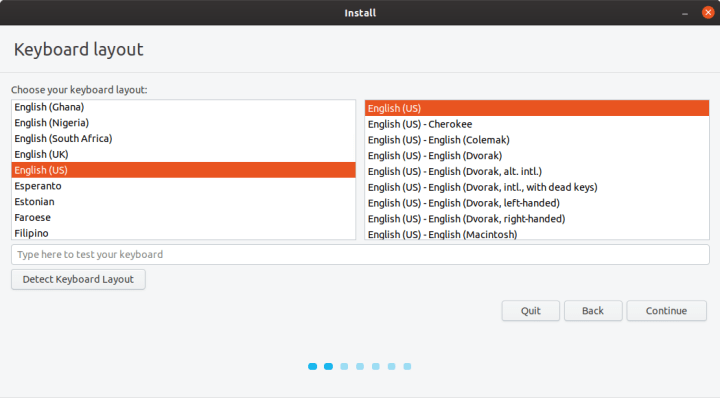 The second step is to choose your keyboard layout. You can always add more layouts (and languages) after the installation.