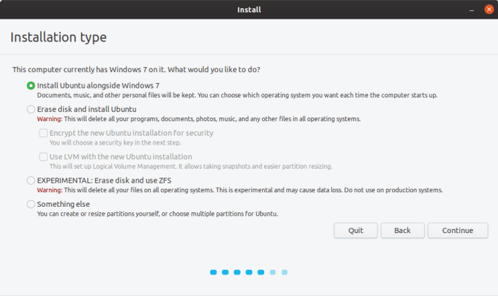 Ubuntu installation on a physical machine with an existing Windows 7 operating system