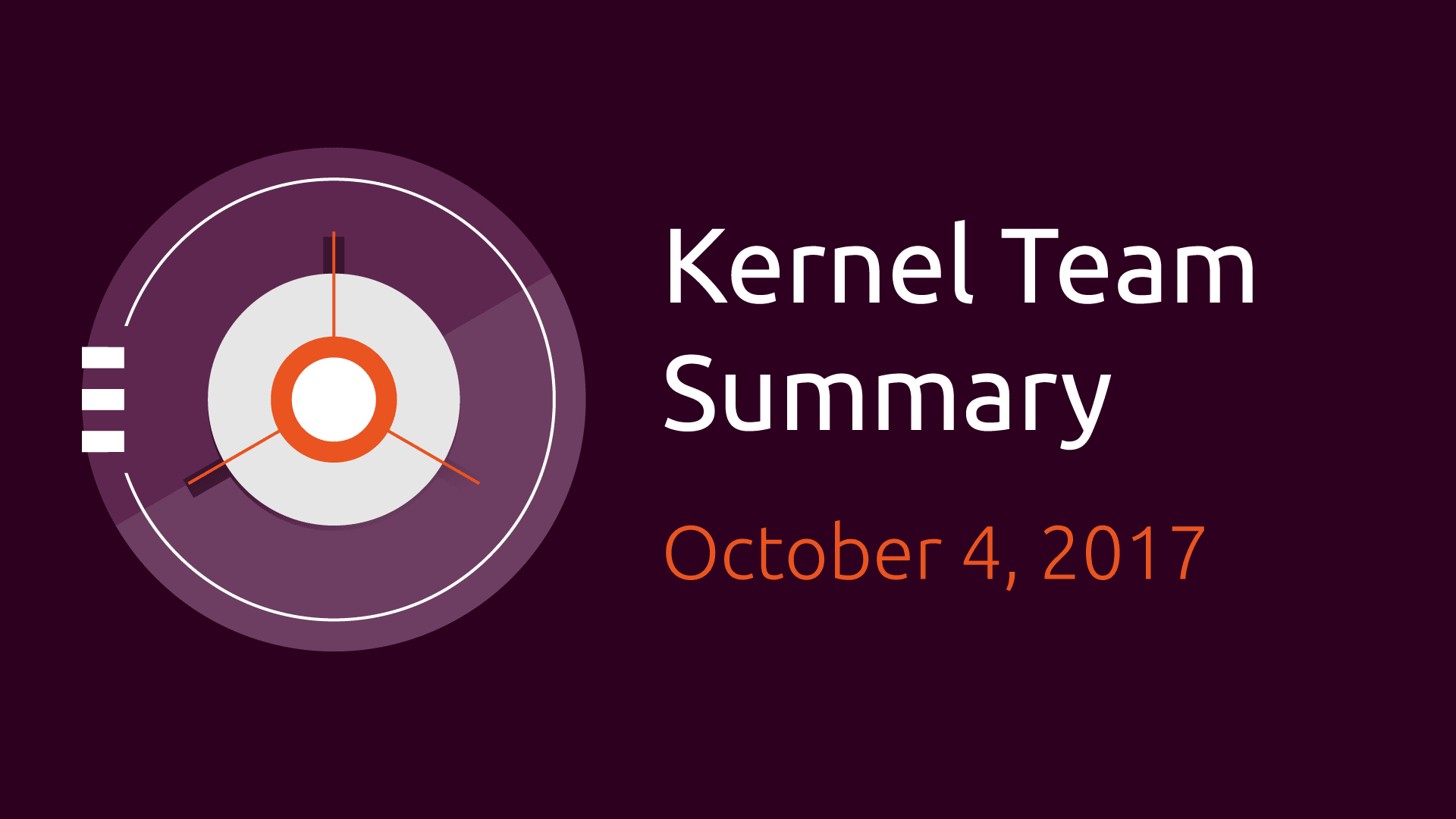 Kernel Freeze - Oct 5 (~1 day away) Final Freeze - Oct 12 (~1 week away) Ubuntu 17.10 - Oct 19 (~2 week away)
