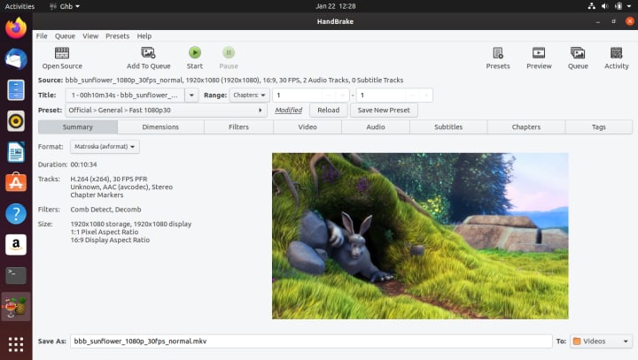 Handbrake supports hardware acceleration, batch conversion, and by default, can use pretty much any DRM-free format. You can output your media to MP4 or MKV containers, encoded as H.264, H.265, VP8, VP9 for video, Flac, Vorbis, MP3, AC3 for audio, and then some.