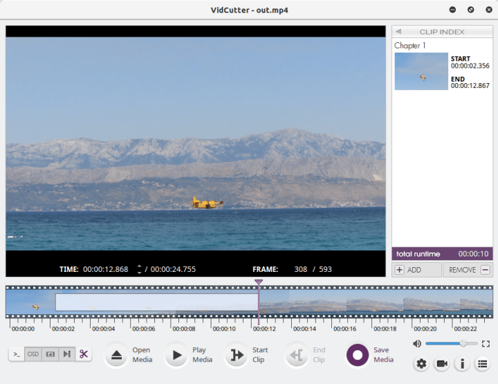 This application does as its name says – it can be used to cut longer video files into smaller clips, but then, it can also join smaller clips into as longer production. Quite handy if you have lengthy video recordings, and you only need small (relevant) portions. It does not do any transcoding, so the actual cut-and-join actions are fast.