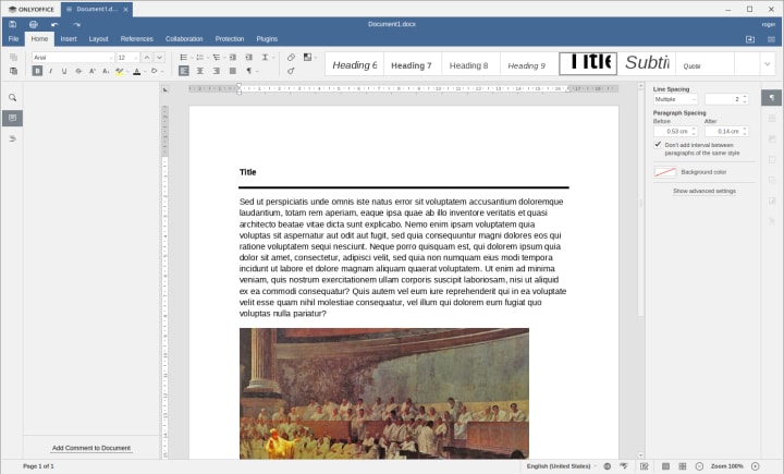 The list of capabilities does not end there. Desktop Editors also comes with strong collaboration features, although these require a few extra steps to set up and use. A mandatory component for this functionality is ONLYOFFICE Document Server, which is also available as a snap package. Real-time collaboration is then possible with the ONLYOFFICE cloud as well as Nextcloud and ownCloud.