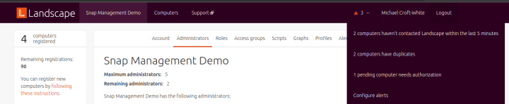 That’s it – with your device enrolled, you can start managing it from the Landscape Server. Start by trying to install a new snap or fixing its version to prevent update? Maybe setup some graphs to monitor how your devices are performing or perhaps set up an automatic alert to email you if one of your devices stops responding? All from the comfort of your own desktop.