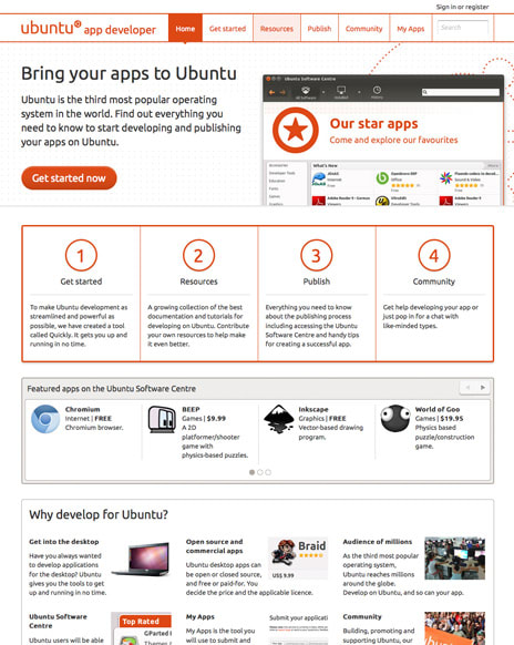 The App Developer’s site navigation follows closely the one of the main Ubuntu sites, with its own flavour