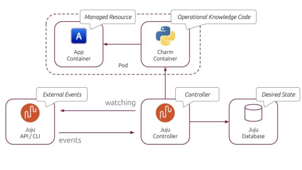 Figure 3: Juju and Charm implementing the operator pattern on Kubernetes