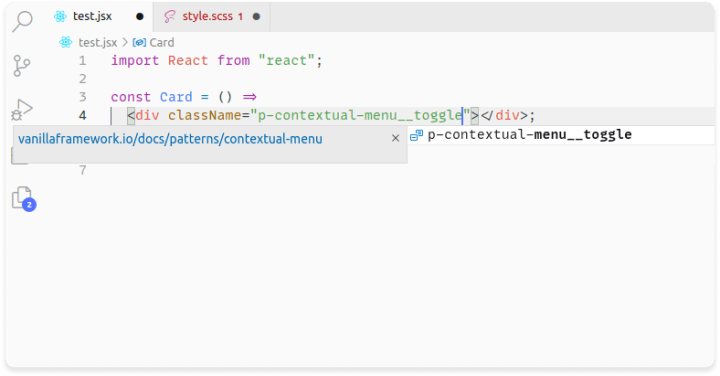 - React support: the Vanilla team maintains a react components library that are used across our sites. We wanted to help the developers contributing to it by adding React autocompletion support (.jsx, .tsx) as well.